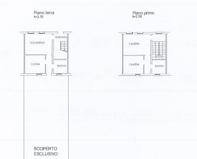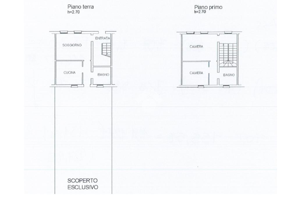 Al piano terra si sviluppa la zona giorno, composta da cucina e soggiorno separati, ambienti ben illuminati, oltre a un disimpegno che conduce al bagno con doccia e all’uscita sul retro, dove troviamo uno scoperto privato di circa 50 m², ideale per momenti di relax all’aperto.